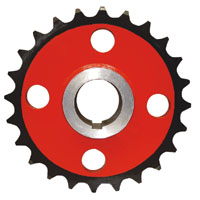 輸送設(shè)備驅(qū)動(dòng)裝置鏈傳動(dòng)中,采用大小鏈輪傳動(dòng)進(jìn)一步降低輸送設(shè)備的鏈條速度,大鏈輪常用齒數(shù)有:32、36、42、46、52;小鏈輪常用齒數(shù):17、19;根據(jù)需要選用單排齒、雙排齒及多排齒。