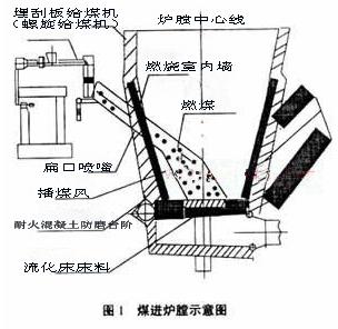 由于噴嘴裝在進(jìn)煤口的底部,播煤風(fēng)就沿著進(jìn)煤口底部噴入爐膛燃燒室。這樣播煤風(fēng)對燃煤起到“支撐”作用,燃煤是懸浮在播煤風(fēng)上面而被“托”進(jìn)燃燒室的,因而它輕松越過床料的“死區(qū)”而被拋入流化床床面內(nèi)。同時(shí)播煤風(fēng)風(fēng)速很高,對燃煤又起了均勻撒播的作用,使燃煤與床料充分混和,有利于其充分燃燒,大大提高了鍋爐運(yùn)行的經(jīng)濟(jì)性。