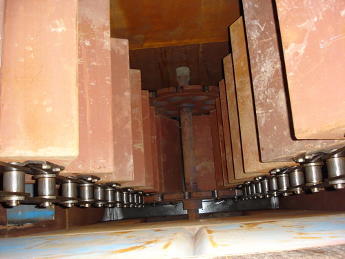 本機(jī)按國家標(biāo)準(zhǔn)設(shè)計制造,采用重力方式卸料,以板式筒滾子鏈為牽引件,適于輸送堆積比重≤2t/m3,塊度分別為55、80、110毫米琢性物料,物料溫度不超過250℃,如塊煤、碎石、礦石、卵石等。